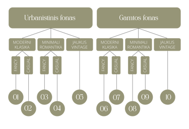 Jūsų abiejų aprangos spalvų gama turi derėti tarpusavyje, neturite apsirengti vienodai, bet jei „susišauks” panašūs tonai ir spalvos atrodysit labai vientisai ir stilingai. Taip pat tiek pat svarbu, kad abiejų apranga derėtų stilistiškai, taip sakant – būtų iš vienos operos. Žemiau rasi greitą testą, kuris padės suprasti fotosesijos aprangos dinamiką, norus ir nukreips į konkrečius moodboard’us su pavyzdžiais. Taip pat verta pasisemti idėjų iš Pinterest – ten rasi begalę įkvėpimų. Beje, rekomenduočiau vengti labai ryškių spalvų, bet čia jau priklauso nuo jūsų stiliaus ir asmenybės. Tiesiog, renkantis neutralias, žemiškas spalvas niekada nesuklysi!